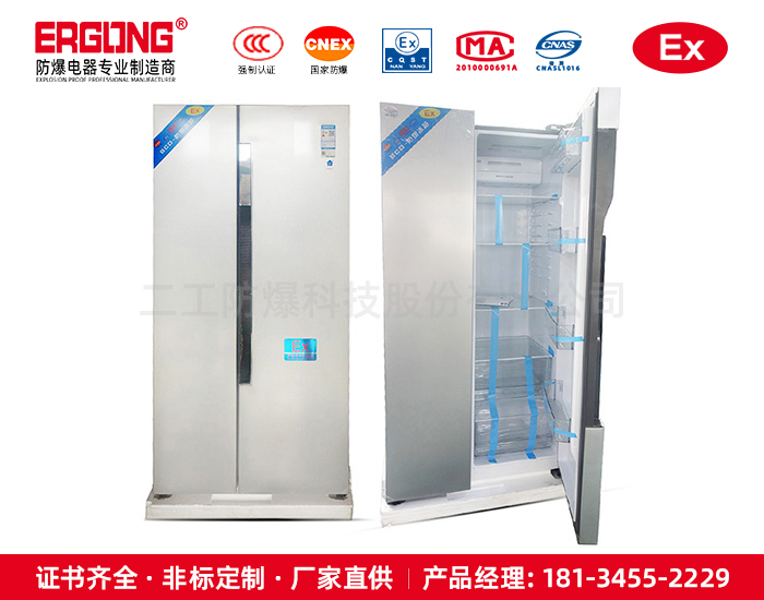 防爆冰箱(大容量)符合GB3836.1、GB3836.2、GB3836.4、GB3836.8、GB3836.9等爆炸性環境用電氣設備等國家標準所規定的技術條款,產品經國家防爆電氣產品質量監督檢驗測試中心檢測合格,取得了防爆合格證,防爆證號為CNEx16.3832,防爆標示為Exd[ia]mbIICT4 Gb
